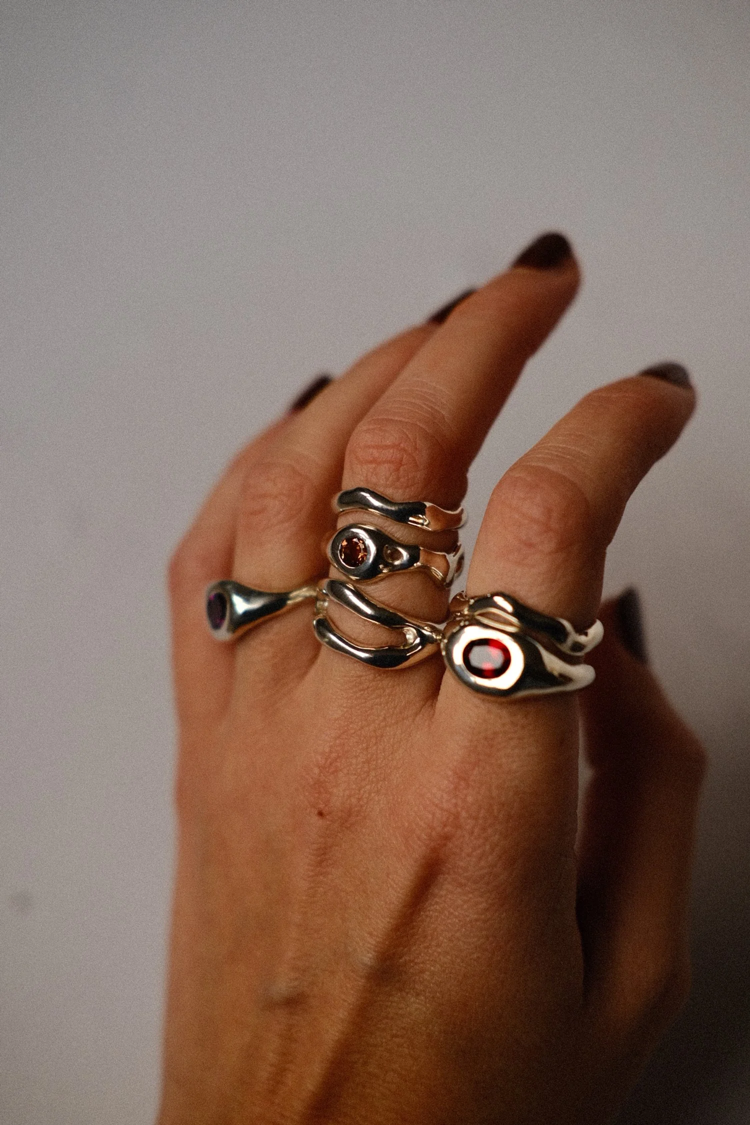 The Influx Collection features eight one-of-a-kind designs, hand-carved from jeweller’s wax and cast in recycled silver. With no moulds used, each piece is truly unique - once they’re gone, they’re gone.