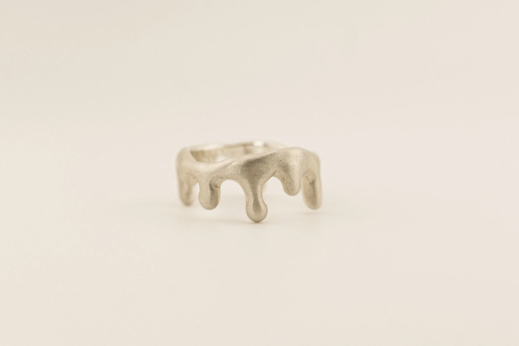 Part of the ‘Lunar Tides’ collection, the ‘Drip’ ring was hand-carved from jewellers wax using the wax build up method. Its design lends itself to the movement of water, creating a bold yet playful everyday piece.